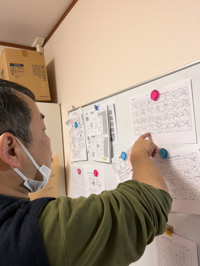 ホームでの宿泊を少しずつ増やすことを目標にしているOさん。日頃からスタッフと一緒に宿泊表を見て、予定を確認する習慣を大切にしてきました。