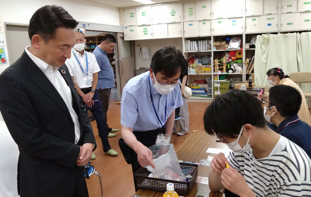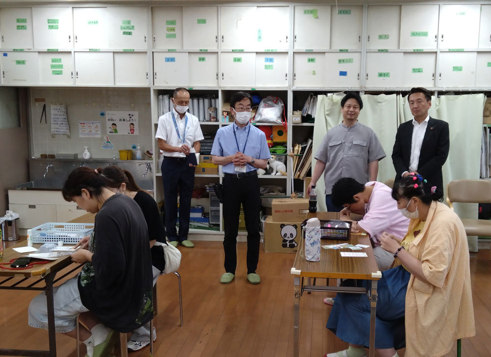 7月16日(水)スマイルアフター活動に清瀬市長さんが訪問・見学にきてくれました。 昨年に続き、2度目の訪問です。福祉・こども部長さん、障害福祉課長さんも同席して見学をしてくださいました。